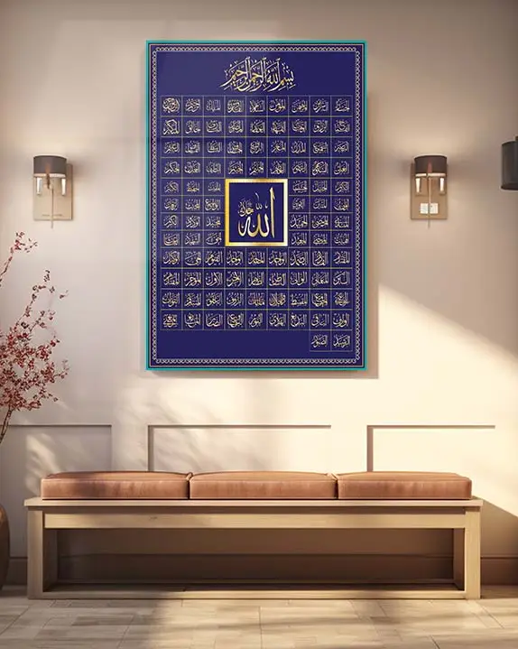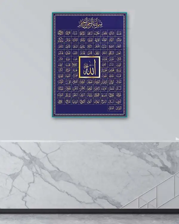 Lacivert Esmaül Hüsna Kırılmaz Temperli Cam Tablo