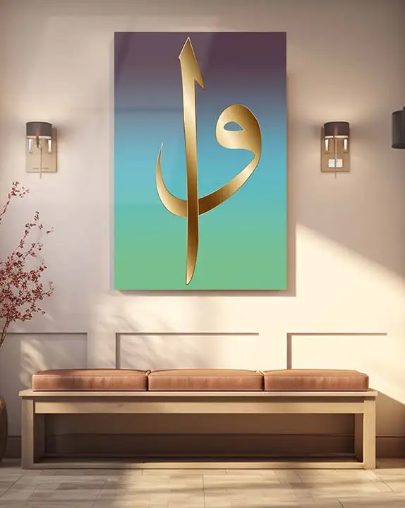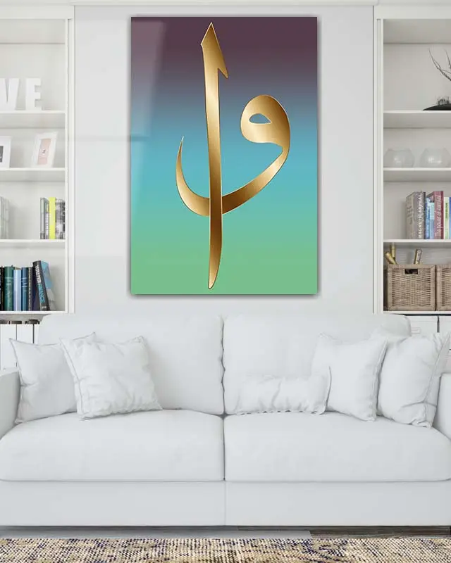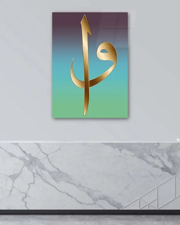 Mavi ve Kahverengi Zeminli Elif ve Vav Harfi Kırılmaz Temperli Cam Tablo