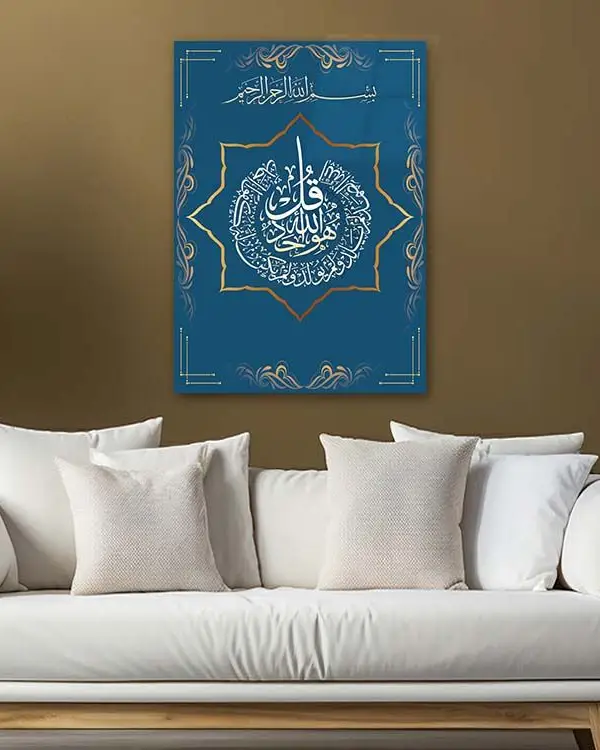 Mavi Zemin Üzerine Ayet ve Besmele Kırılmaz Temperli Cam Tablo