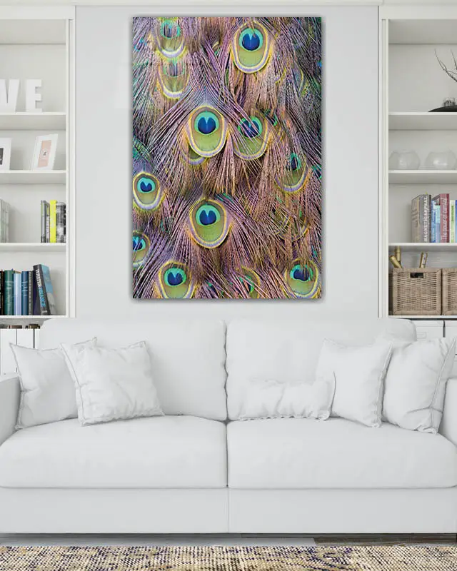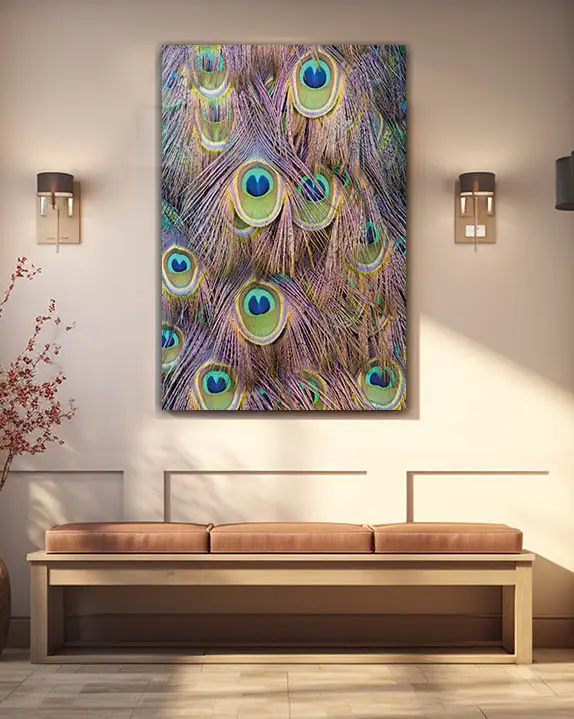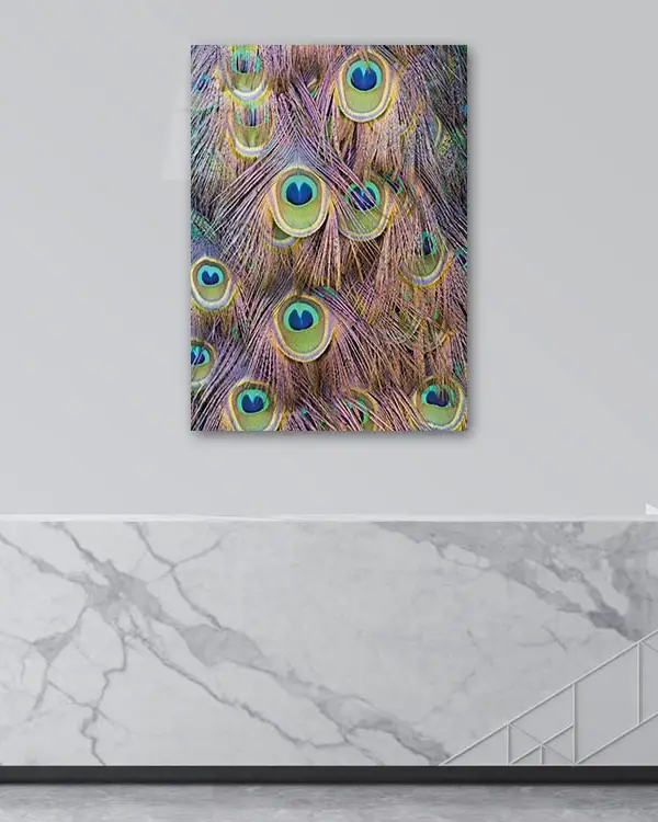 Tavus Kuşu Tüyleri Detaylı Temperli Cam Tablo