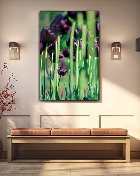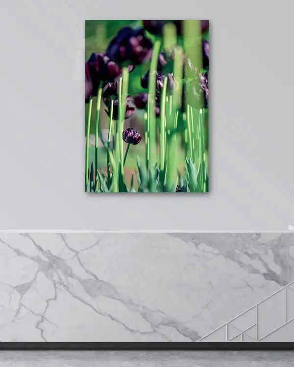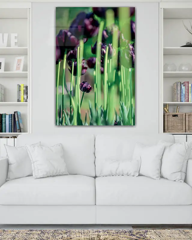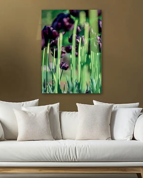 Mor Laleler Bahçesi Temperli Cam Tablo