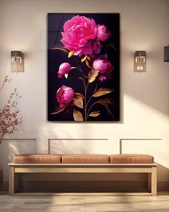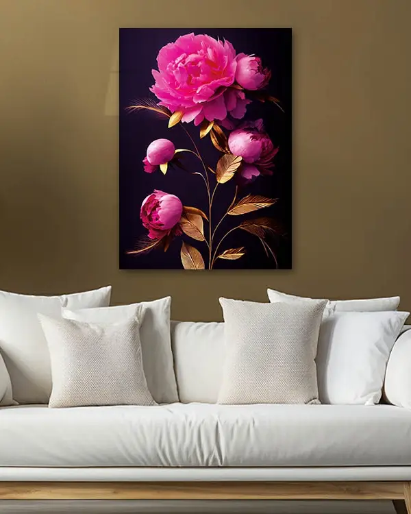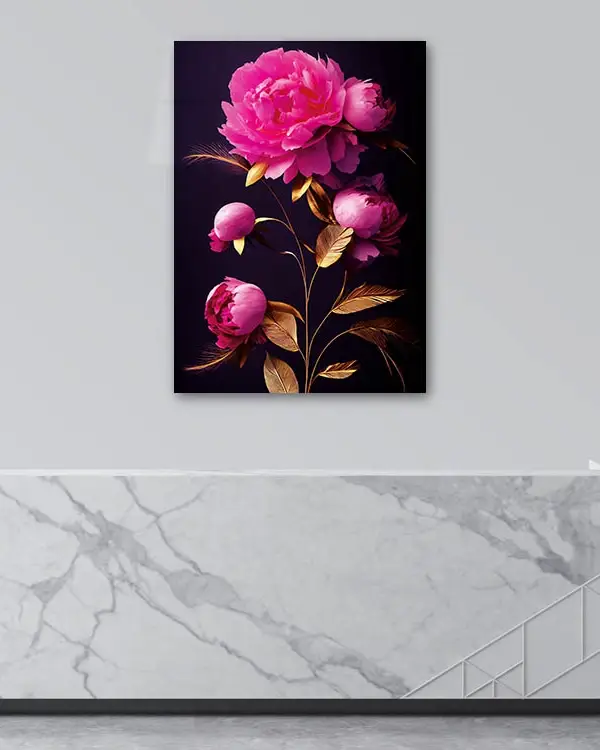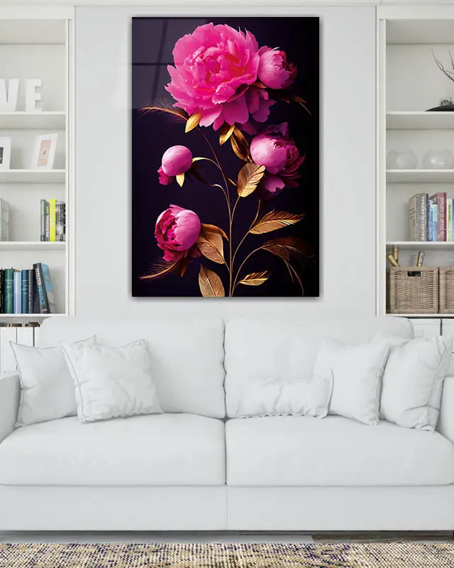 Pembe Orkide Dalları Temperli Cam Tablo