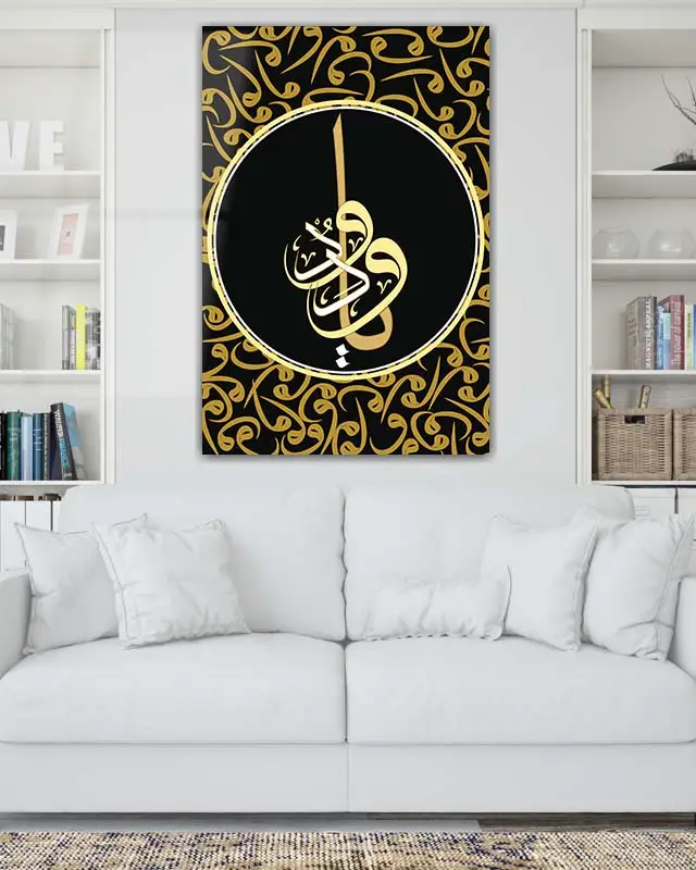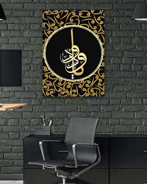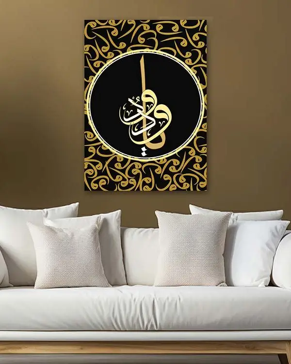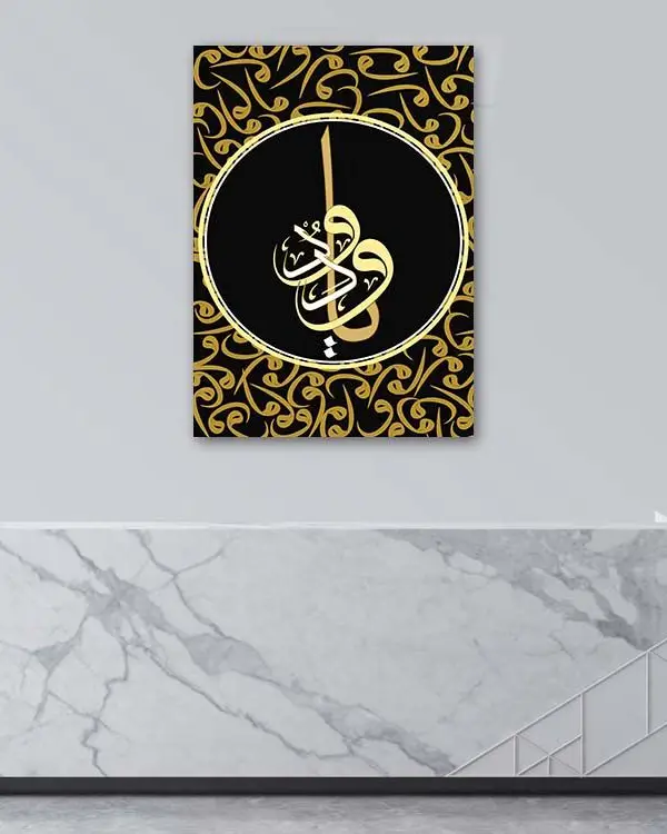 Muhammed Hat Sanatı Siyah ve Altın Desenli Kırılmaz Temperli Cam Tablo