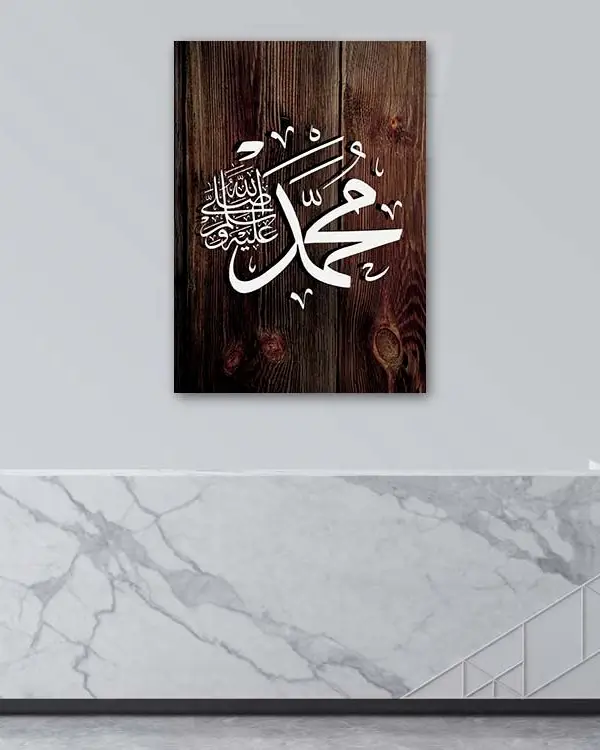 Muhammed Lafzı Ahşap Zeminli Kırılmaz Temperli Cam Tablo