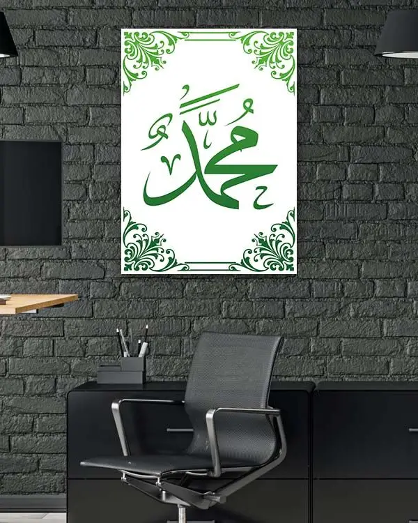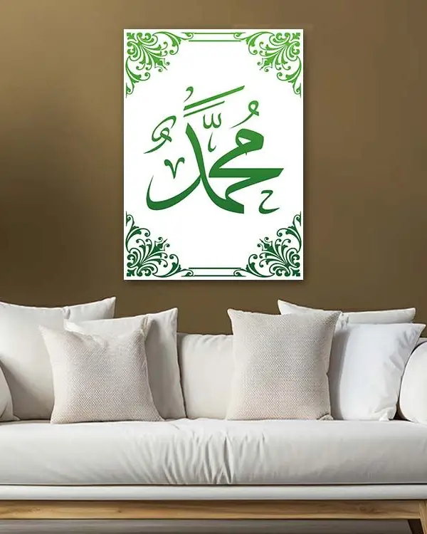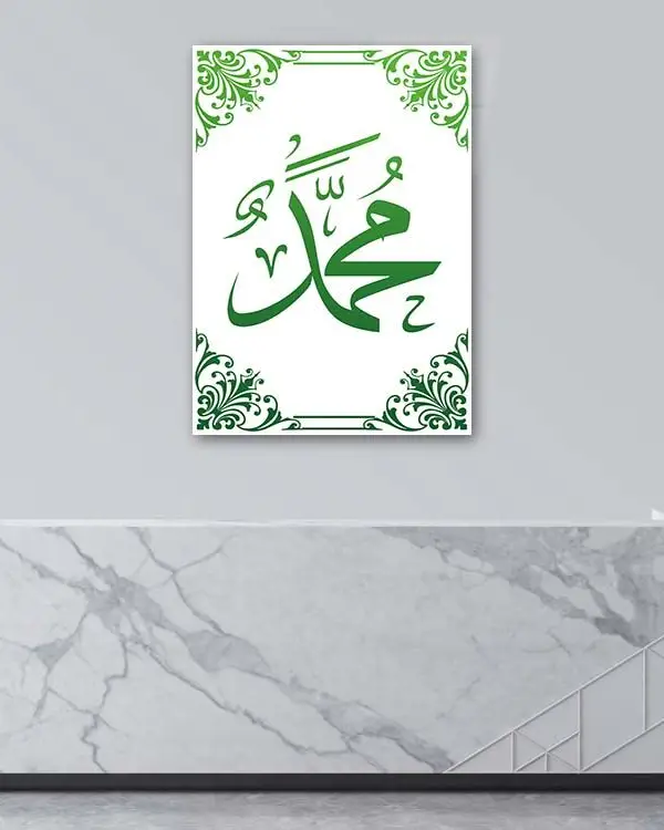 Muhammed Lafzı Yeşil Hat Kırılmaz Temperli Cam Tablo