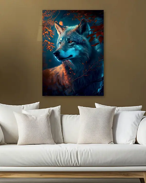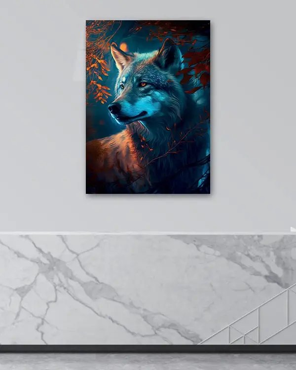 Dolunay ve Kurt Silüeti Temperli Cam Tablo