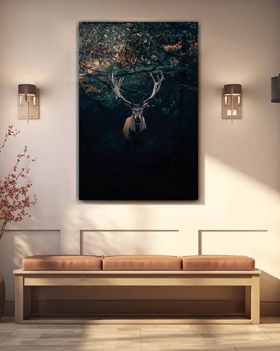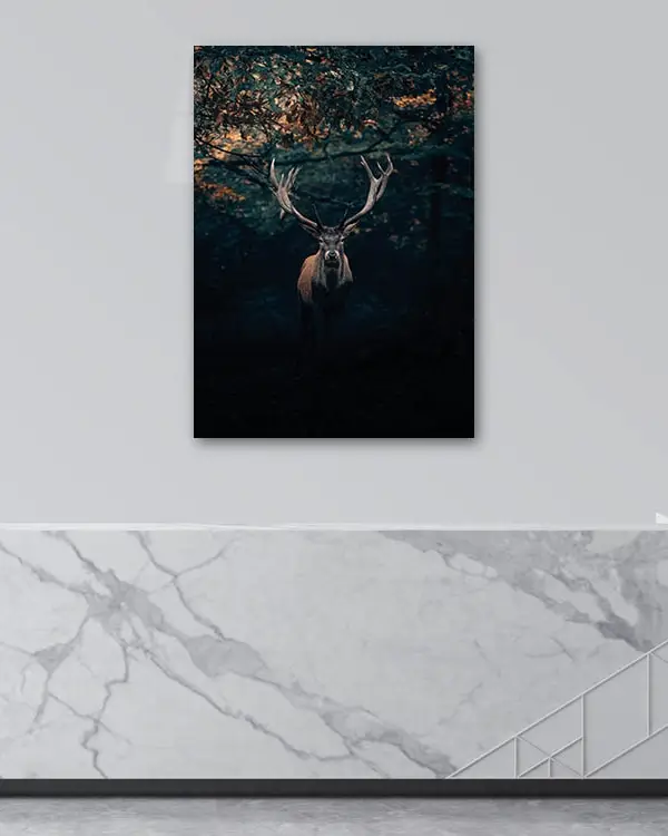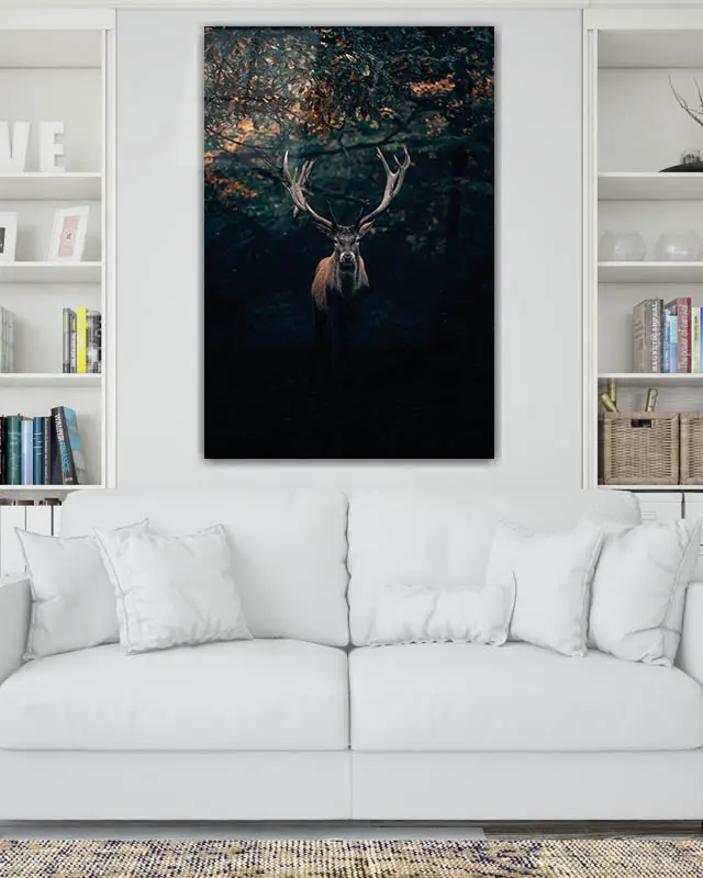 Ormanda Geyik Silueti Temperli Cam Tablo