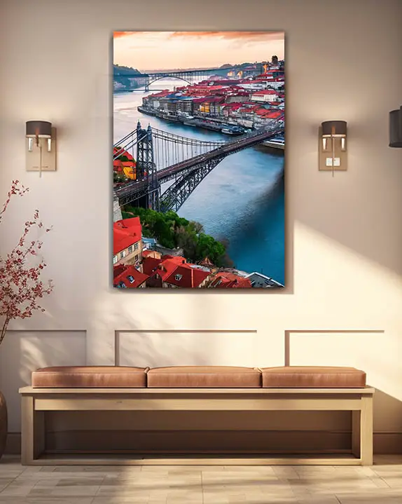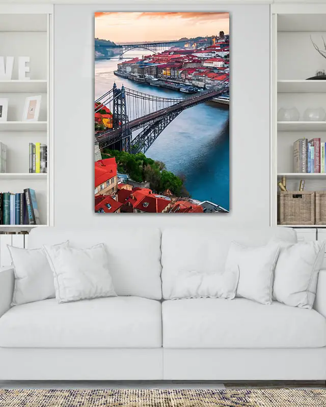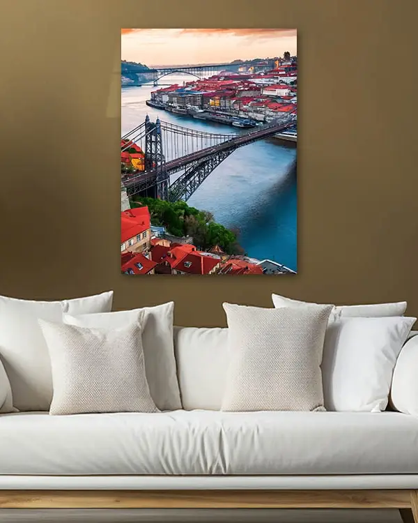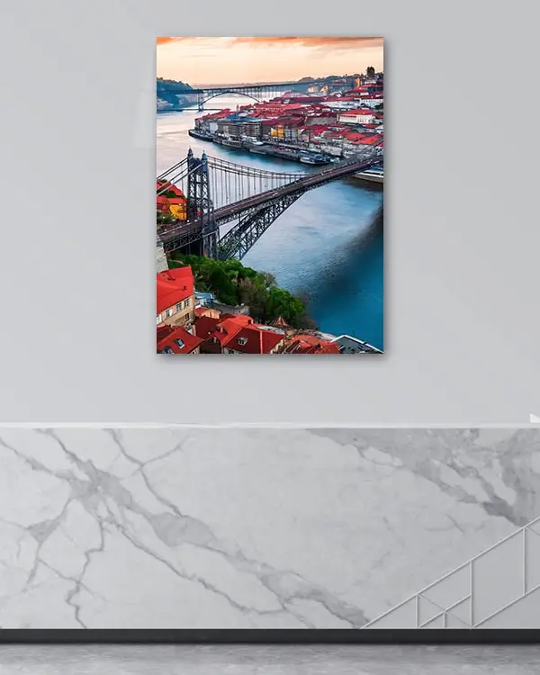 Porto Şehir ve Köprü Manzarası Temperli Cam Tablo