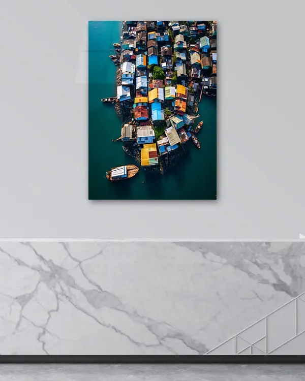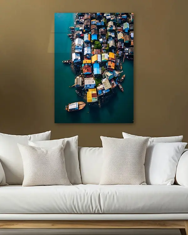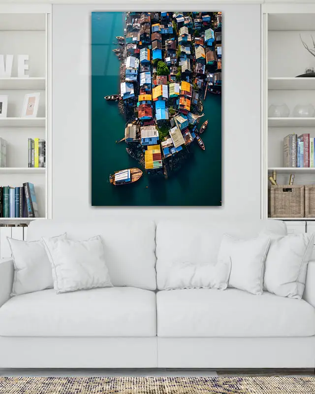 Renkli Sahil Evleri Temperli Cam Tablo