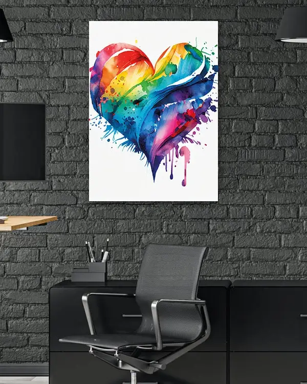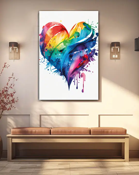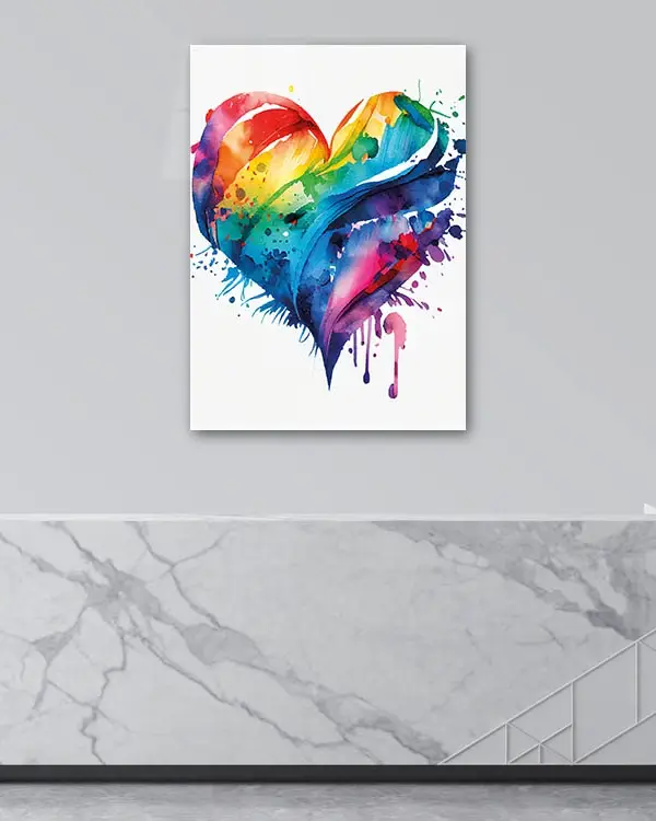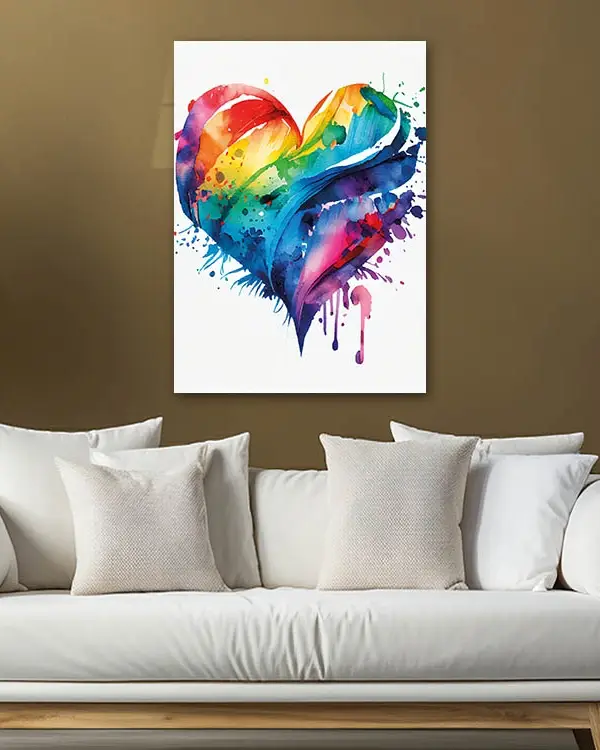 Renkli Su Boyası Kalp Tasarımı Temperli Cam Tablo