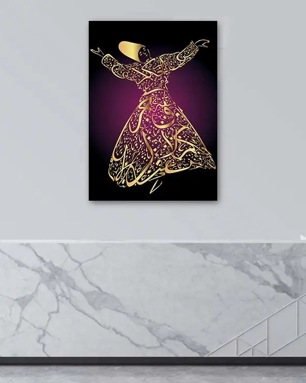Semazen Figürlü Hat Sanatı Kırılmaz Temperli Cam Tablo