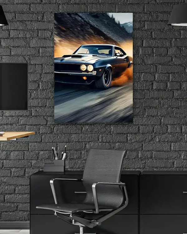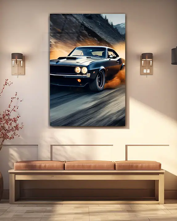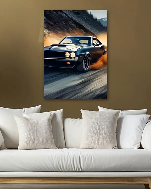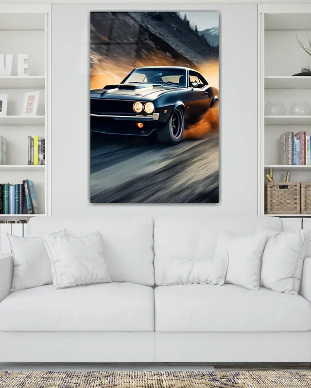 Siyah Klasik Araba Drift Temperli Cam Tablo