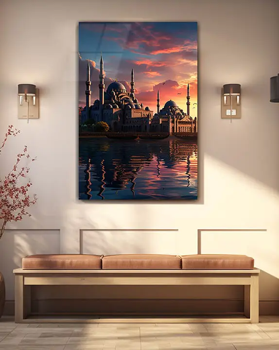 Süleymaniye Camii Gün Batımı Kırılmaz Temperli Cam Tablo