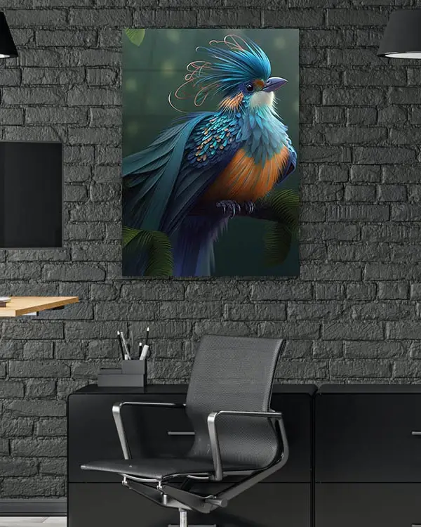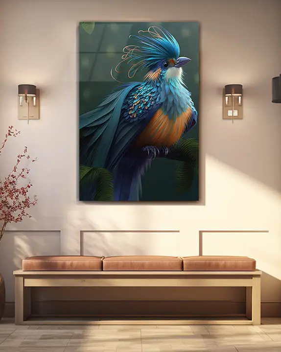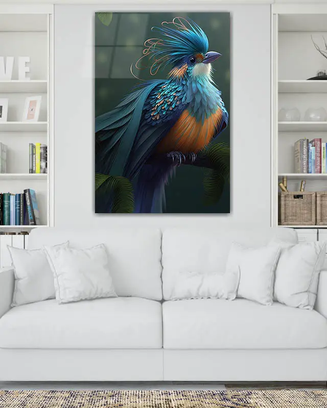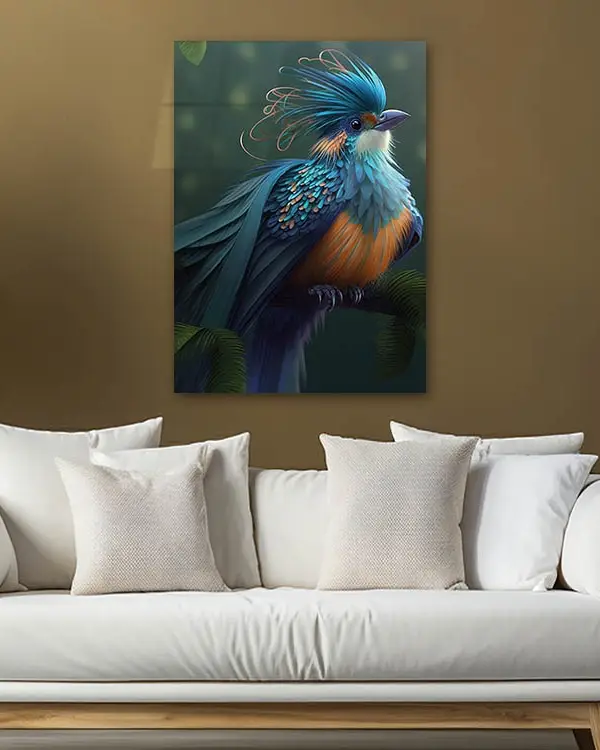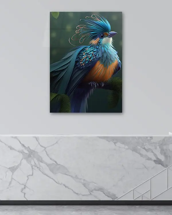 Tropikal Mavi Kuş Temperli Cam Tablo