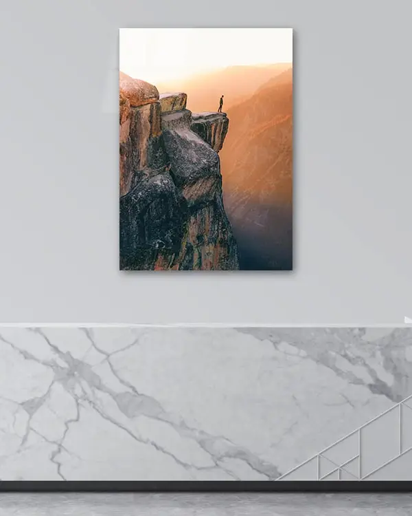 Uçurum Kenarında Gün Batımı Manzarası Temperli Cam Tablo