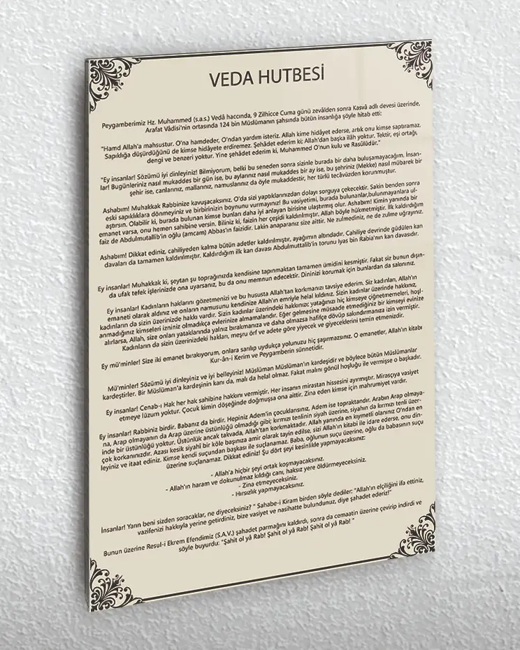 Veda Hutbesi Kırılmaz Temperli Cam Tablo