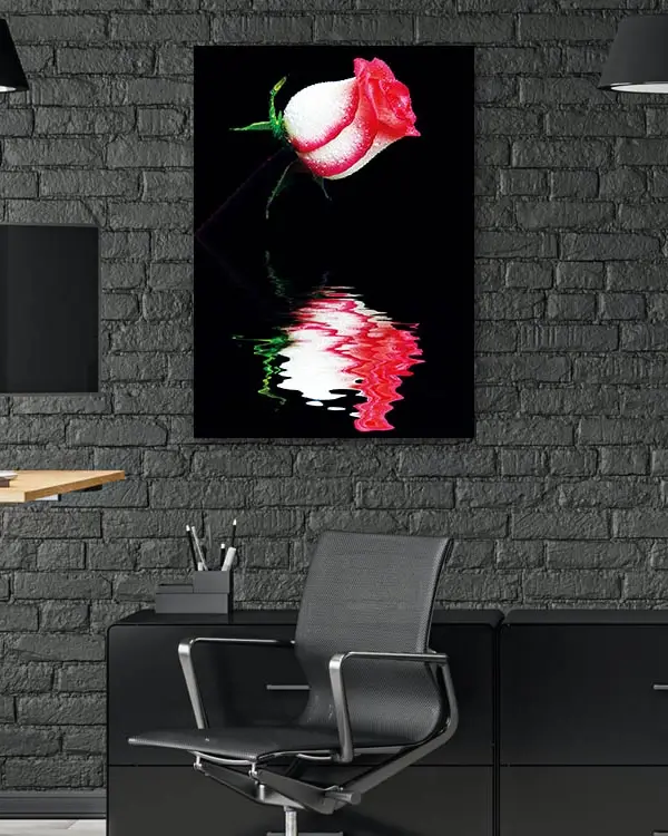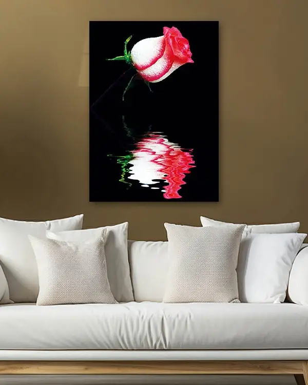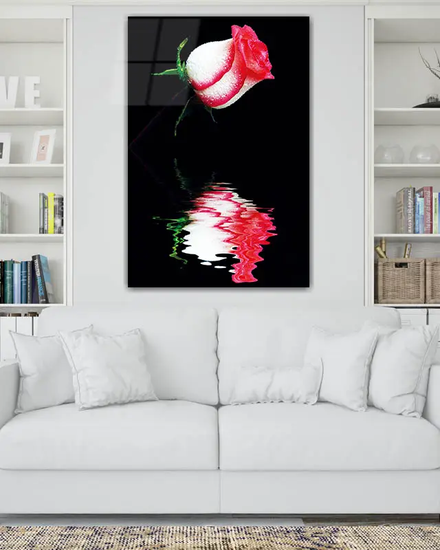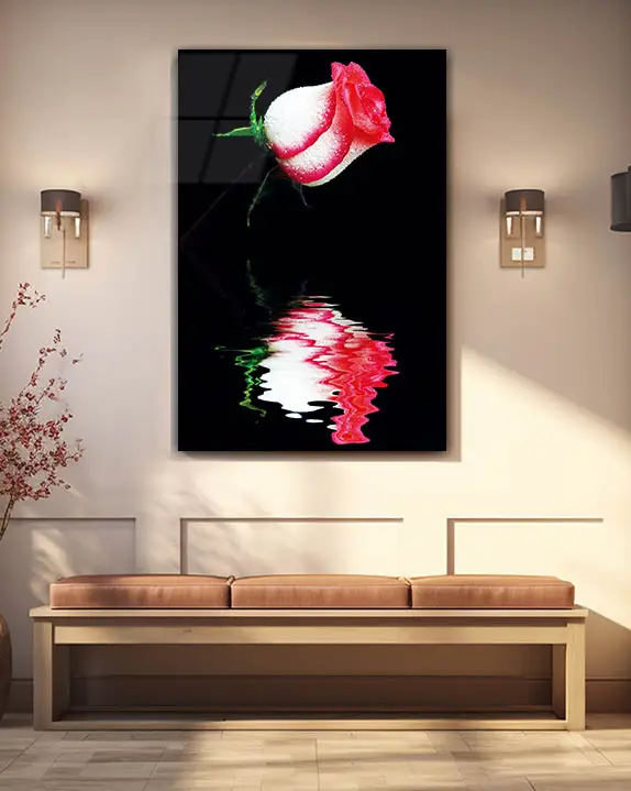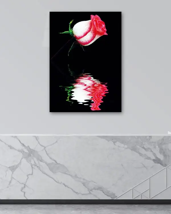 Yansımalı Pembe Gül Temperli Cam Tablo