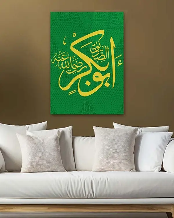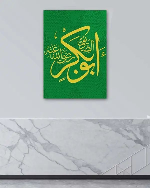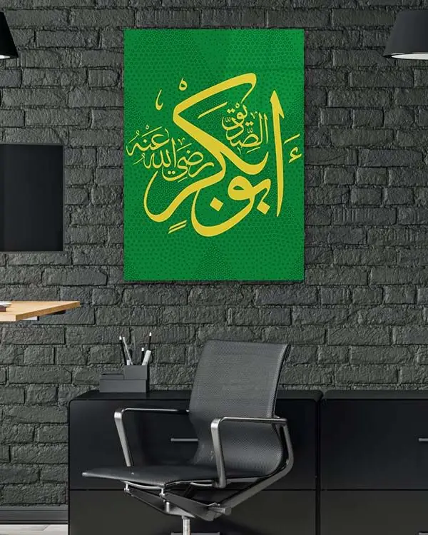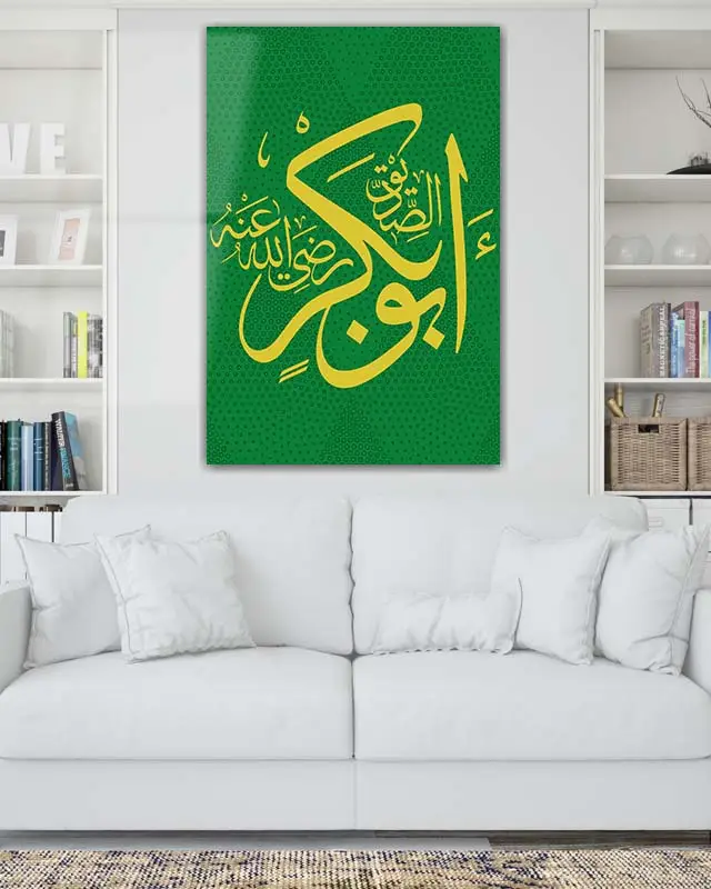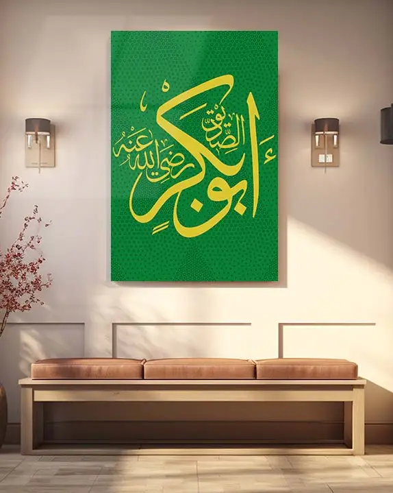 Yeşil Renkli Hazreti Ebubekir Lafzı Kırılmaz Temperli Cam Tablo