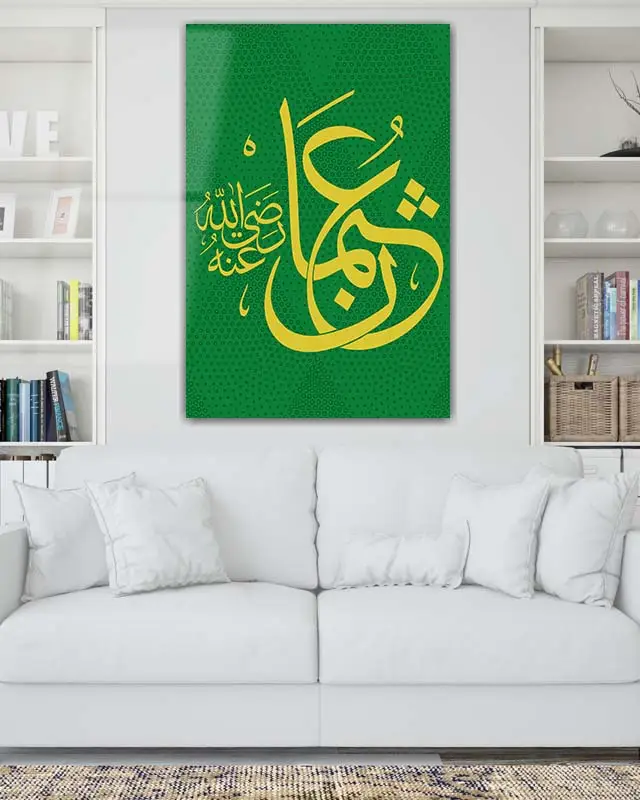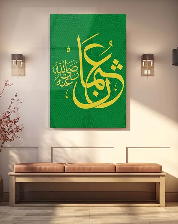 Yeşil Renkli Hazreti Ömer Lafzı Kırılmaz Temperli Cam Tablo