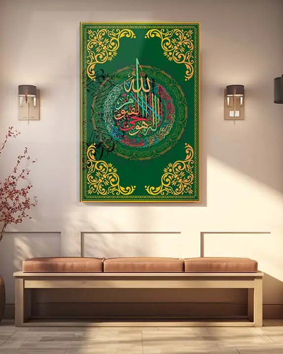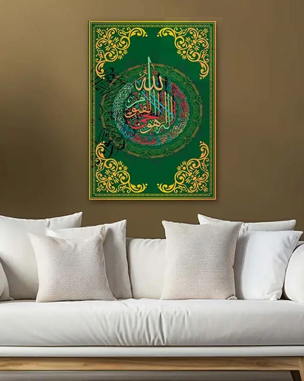Yeşil ve Altın Detaylı Kırılmaz Temperli Cam Tablo