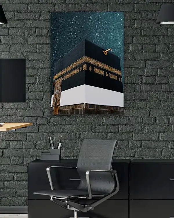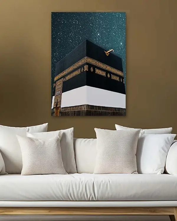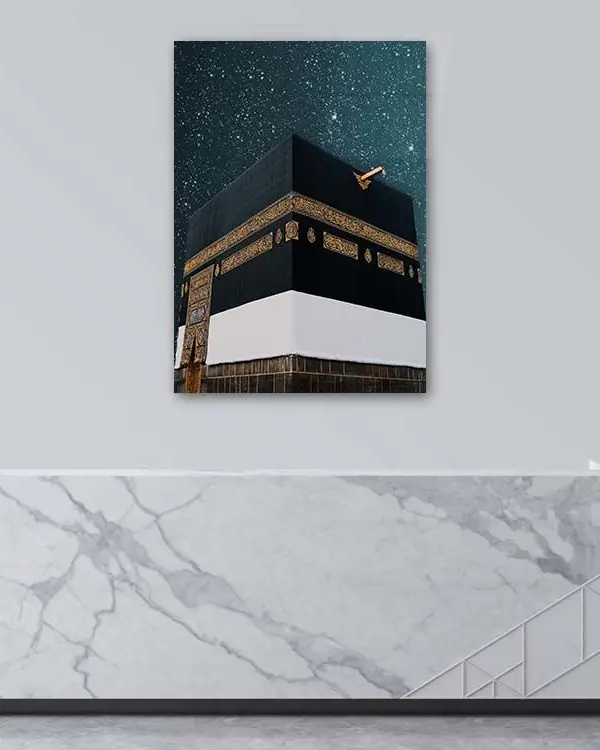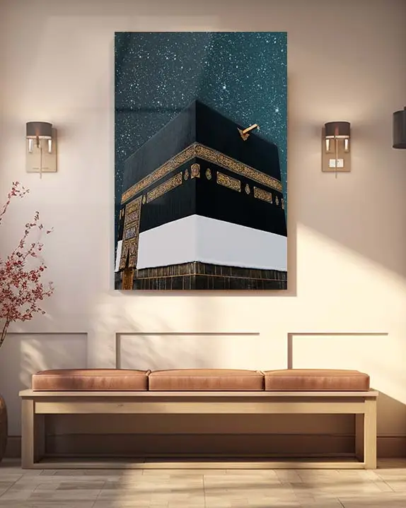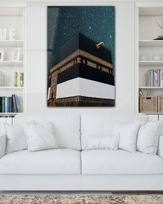 Yıldızlı Gece Kabe Manzarası Kırılmaz Temperli Cam Tablo
