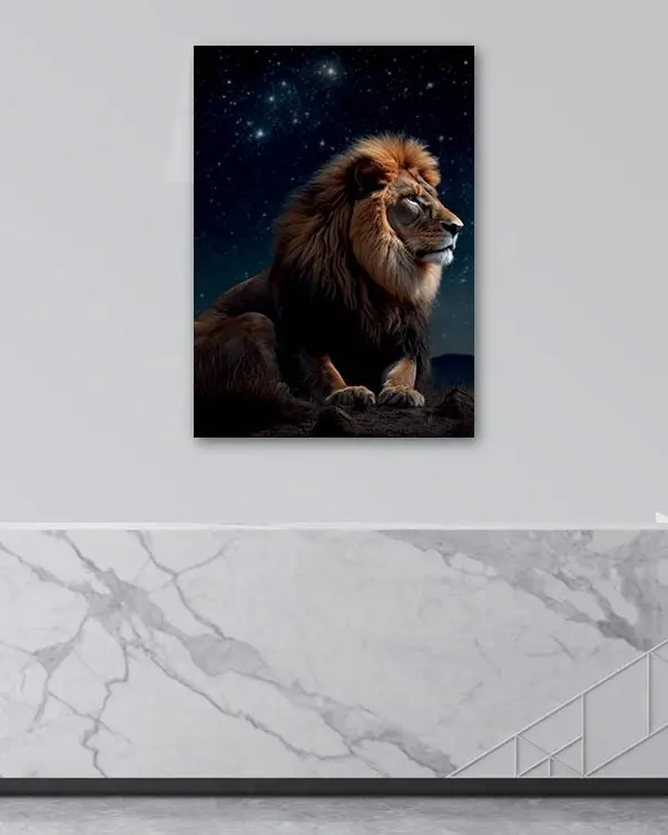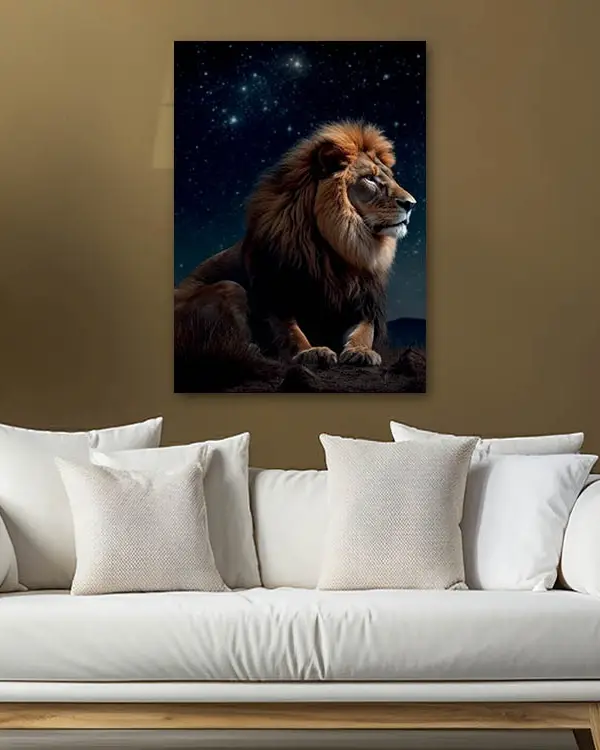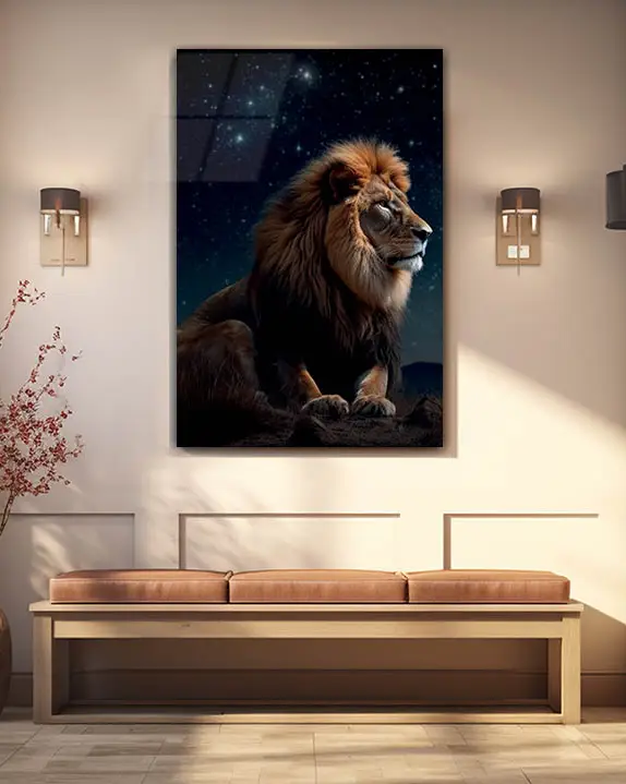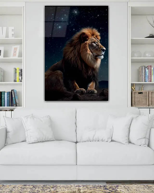 Yıldızlı Gökyüzünde Aslan Temperli Cam Tablo